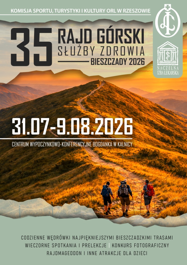 Komisja Turystyki, Sportu i Kultury ORL w Rzeszowie informuje, że w 2026 roku odbędzie się kolejna edycja Rajdu Górskiego Służby Zdrowia „Bieszczady 2026”